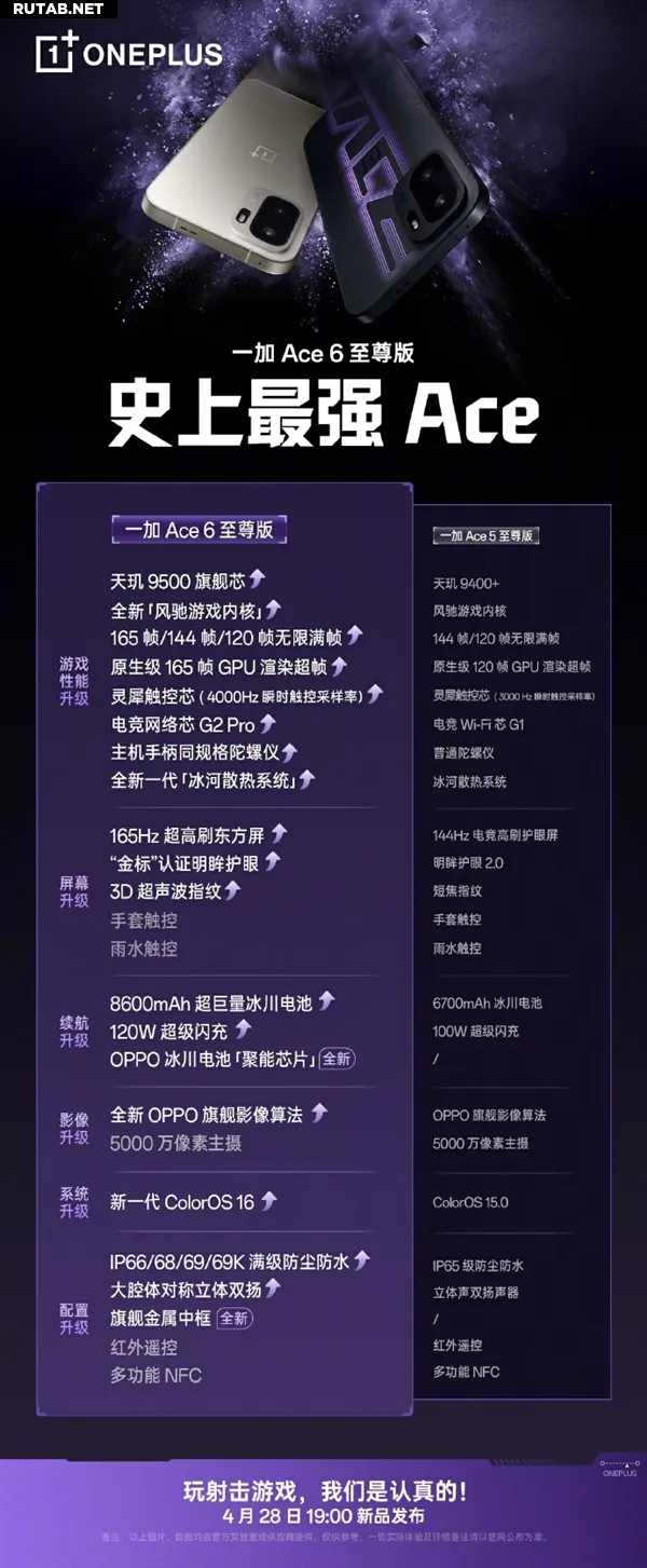 Накануне презентации президент OnePlus в Китае Ли Цзе опубликовал сравнительную таблицу характеристик OnePlus Ace 6 Pro и его предшественника, Ace 5 Pro. По его словам, «раз название "Pro", значит, должен быть всесторонний прыжок вперёд без оглядки».