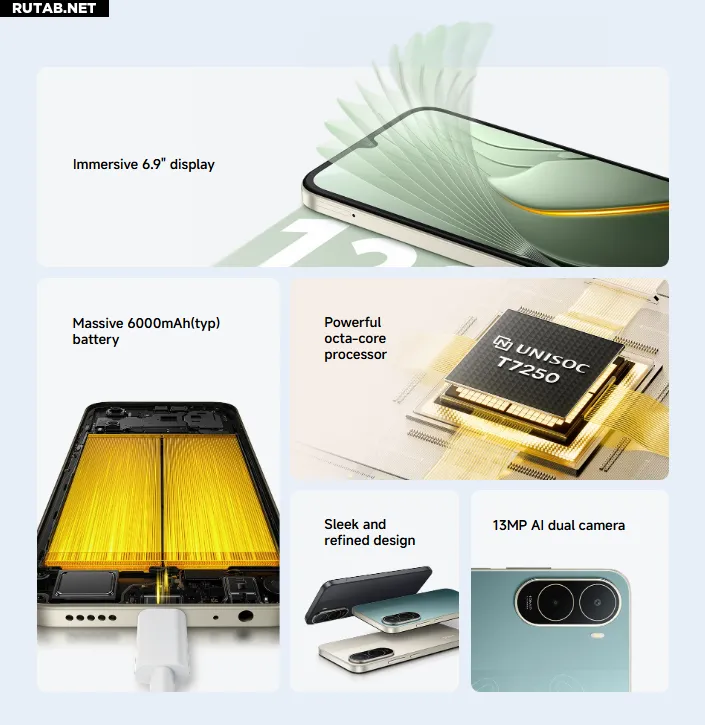 Смартфон построен на чипсете Unisoc T7250, который подходит для простых задач вроде обмена сообщениями, стриминга и нетребовательных игр. Производительность будет знакома тем, кто пользовался старыми бюджетными чипами вроде Snapdragon 680 или Helio G85. Оперативной памяти всего 4 ГБ, но объём встроенного хранилища может достигать 256 ГБ. Также поддерживается расширение через карты microSD.