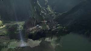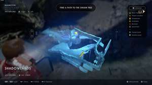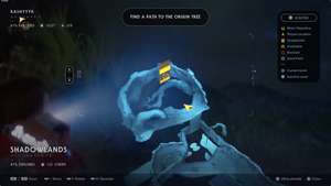 В дальнем конце озера вы подниметесь по заросшей стене в земли теней (Shadowlands). Вместо того чтобы лезть на стену, повернииесь и поищите растение для прыжка. Здесь есть серия из четырех таких растений, которые позволяют вам подпрыгивать. На вершине вы приземляетесь рядом с улучшением.