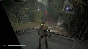 На вашем пути вниз к водопаду Kyyyalstaad вам придется качаться и скользить мимо группы штурмовиков и платформ. В конце последнего скольжения разблокируйте короткий путь справа. Этот сундук находится внутри, рядом с лифтом, который ведет обратно на имперский завод.