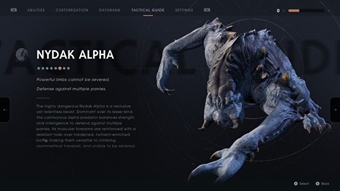 Опциональный босс с планеты Зефо, который заставит вас попотеть. Перед началом боя вы будете находится не в его поле зрения, поэтому рекомендуем нанести скрытую атаку мечом, дабы уравновесить шансы. Теперь перейдём к главному.