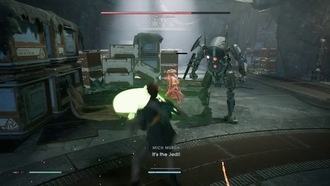 Во второй фазе боя, на арену вырветься дроид из ниоткуда и начнет стрелять по вам, пока вы пытаетесь вести честный бой один на один. Используйте силу, чтобы как можно быстрее избавиться от дроида.