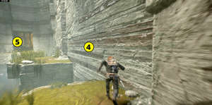 Вернувшись к реальности, бегите вдоль стены (4), а затемк переходу (5). Покиньте локацию и вернитесь на поверхность.