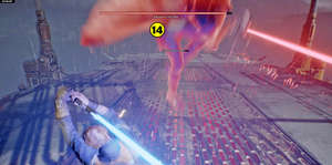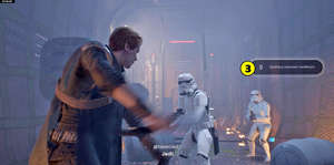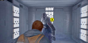 Начнется еще одна длинная сцена, после которой герою предстоит столкнуться с двумя штурмовиками. Нажмите клавишу для атаки (3), чтобы атаковать врагов. Победите их и двигайтесь вперед.