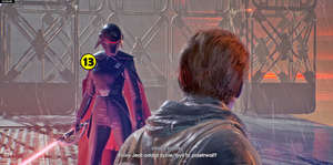 Вместо этого будет бой с первым боссом - Вторая сестра (13). Во время дуэли можете использовать защитные навыки и атаки светового меча, которые вы изучили.