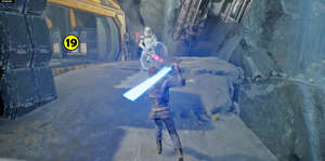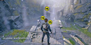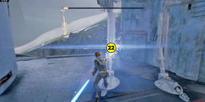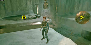 Двигайтесь вперед и, пройдя пропасть, используйте толчок силой на сломанной стене (17), благодаря чему вы разблокируете короткий путь.
