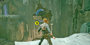 Используйте силу на сфере под потолком, чтобы она ударилась о потрескавшуюся стену (9). Таким образом, вы разблокируете другой шар, который вы толкаете к месту с предыдущими сферами.
