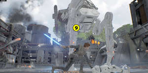 Поднявшись, приготовьтесь к перестрелке с большим количеством врагов. Первоначально они будут штурмовиками и боевыми дроидами, но со временем появится робот AT-ST (9). Используйте свою силу, чтобы отразить его гранаты и ракеты и атаковать его конечности.