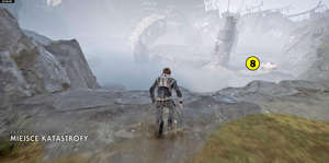 Двигайтесь вперед, прыгайте на платформу и уничтожьте еще одну стену, чтобы выбраться. Через некоторое время вы достигнете точки сохранения. Спрыгните со скалы в воду и плывите к месту крушения кораблей (8). Осторожнее, там Джотаз слева. Доложите о кораблях Гризу.
