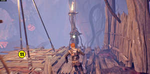 После победы над ними, двигайтесь вперед и используйте силу притяжения, чтобы поднять деревянную стену. Когда это произойдет, прыгайте на другую сторону и разберитесь с другой группой сестер. Продолжайте путешествие, преодолевая препятствия и противников, пока не дойдете до лифта (11), который идет вниз. Подойдите к ближайшей двери и разблокируйте короткий путь, затем вернитесь к лифту.