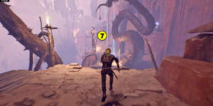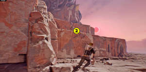 Это пустынный мир с враждебной атмосферой. Начните с движения вперед и прыгайте на стену с растениями, после чего идите направо. Во время восхождения вы увидите нового противника - Нидака. Можете атаковать его (1) или обойти справа.