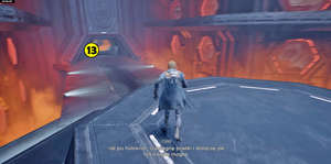 Через некоторое время будет открыт проход (13) снизу. Воспользуйтесь им, после чего используйте компьютер, чтобы выдвинуть платформу, после чего пройдите через пропасть. Затем идите на следующую платформу идентично и сохраните игру в точке медитации.