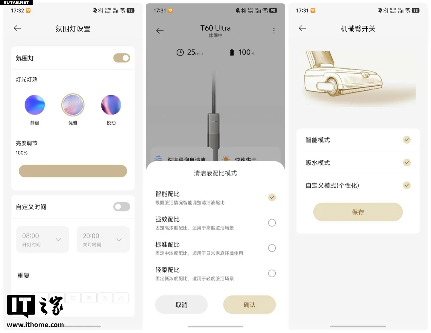 В приложении для T60 Ultra появилось несколько новых опций, таких как упомянутая выше настройка подсветки, выбор режима дозирования моющего средства или управление механическими рычагами.