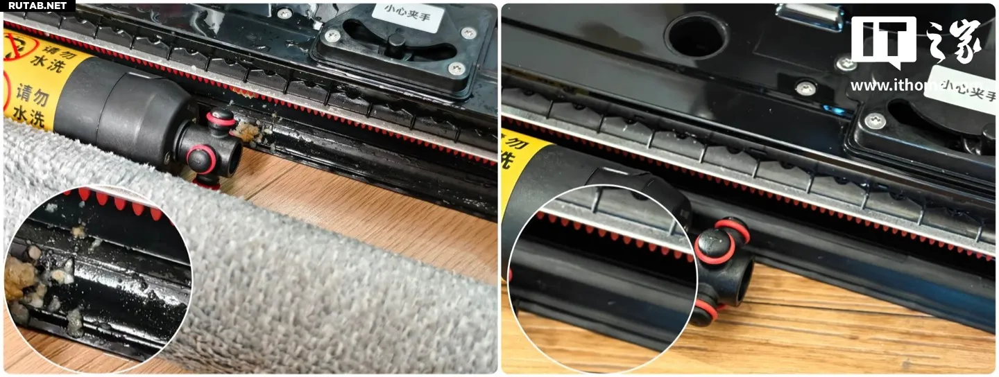 Говорить о технологиях недостаточно, давайте посмотрим на реальные результаты очистки: на изображении четко видно, что после самоочистки роликовая щетка становится исключительно чистой, а ворс остается пушистым без остаточных комков грязи.