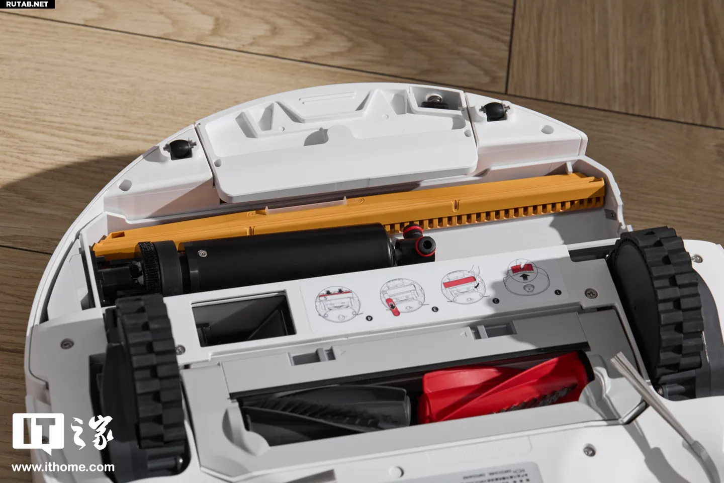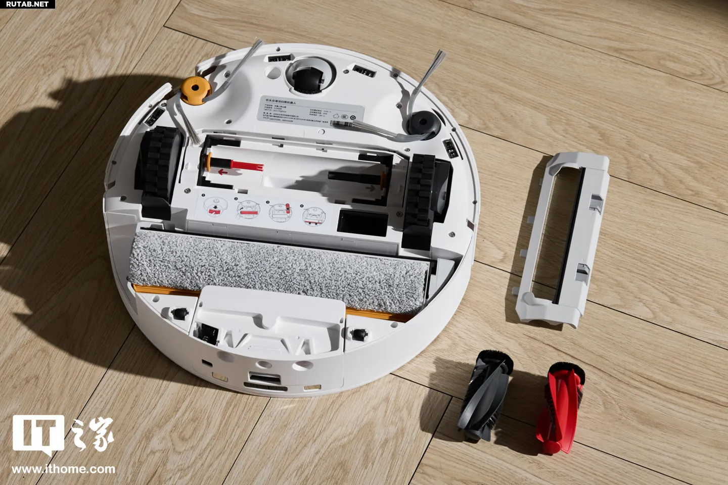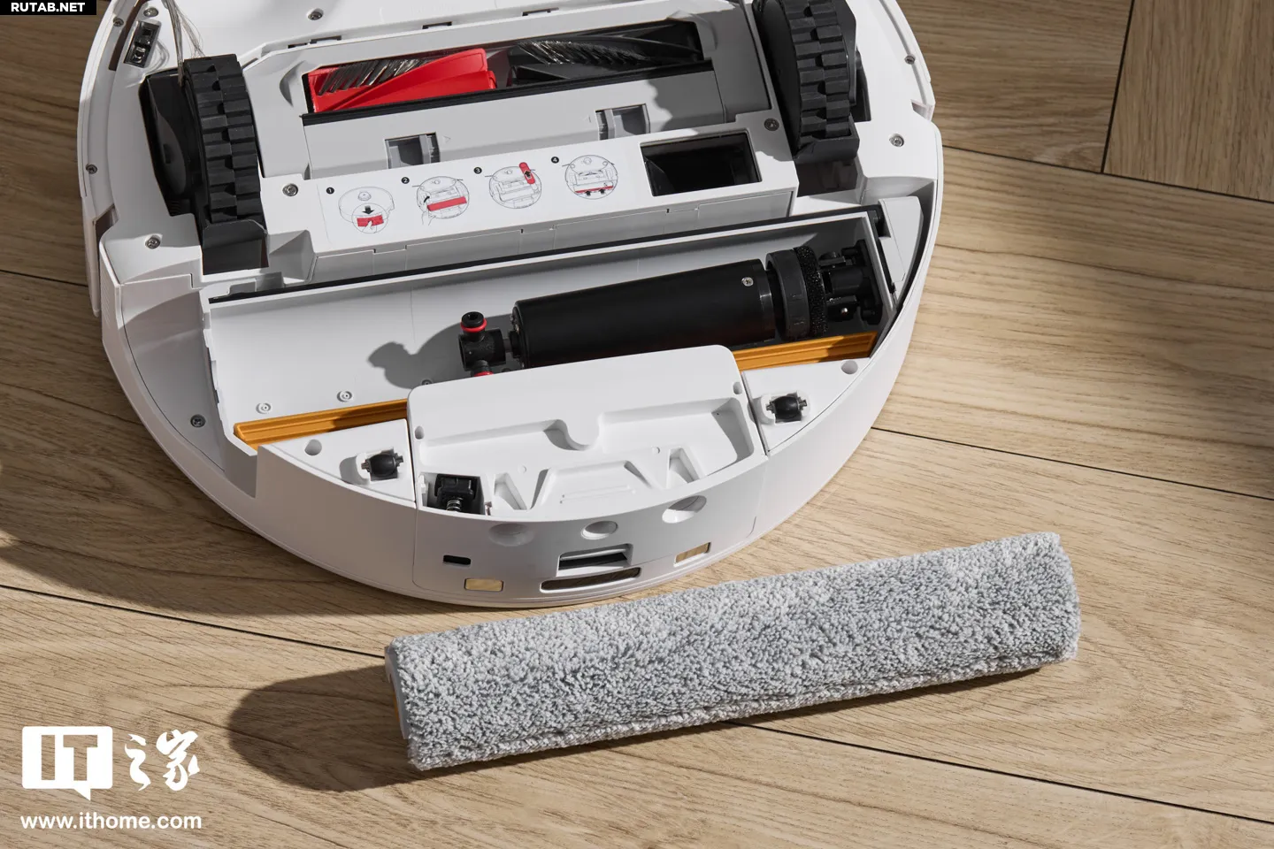 Самое заметное изменение в конструкции — снизу установлен вращающийся валик, как у паровой швабры, вместо привычной тряпки. Важно, что этот валик подвижный: он может подниматься/опускаться и выдвигаться вправо, увеличивая зону очистки и уменьшая пропуски под мебелью и в углах.