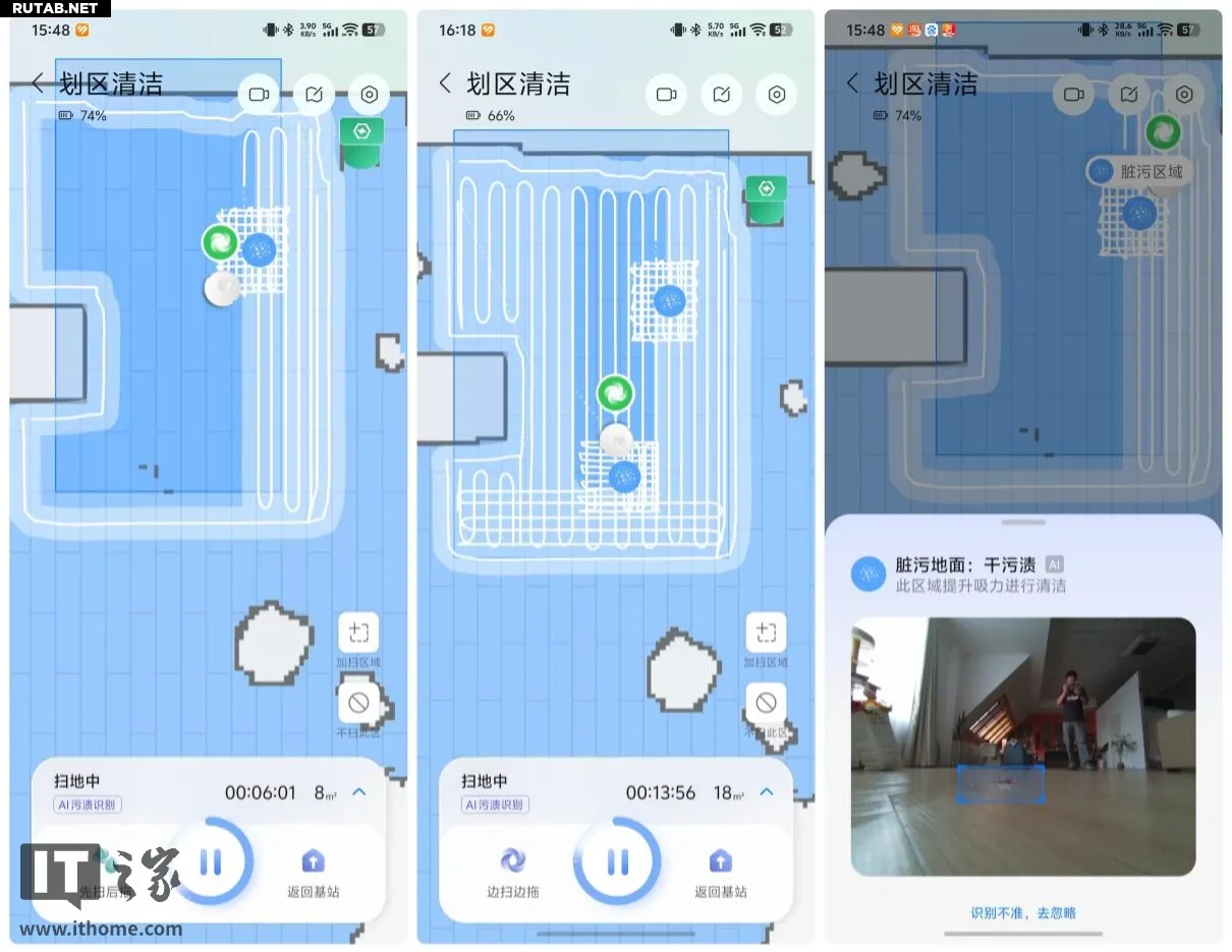 Робот также распознает тип загрязнения на полу и автоматически переключает режимы очистки. Например, при обнаружении сухого пятна активируется режим глубокой очистки с движением по схеме «#».
