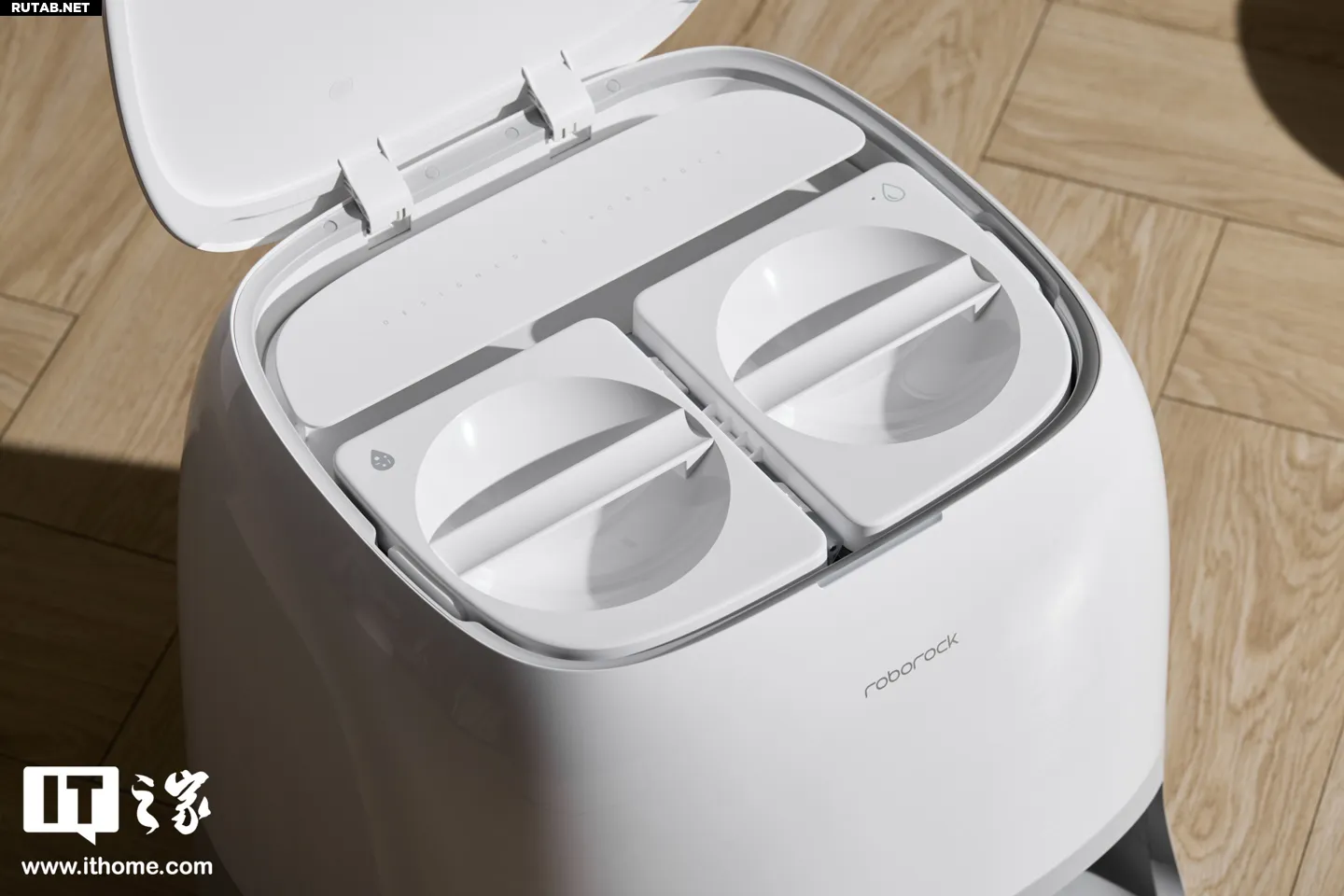Во-первых, это мойка ролика горячей водой при 75°C: после возвращения на базу запускается процесс самоочистки. База подаёт горячую воду температурой 75°C, которая эффективно растворяет и размягчает жир и стойкие загрязнения на ворсе ролика.