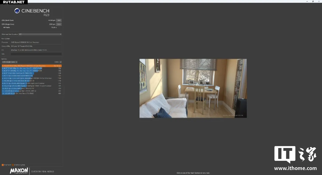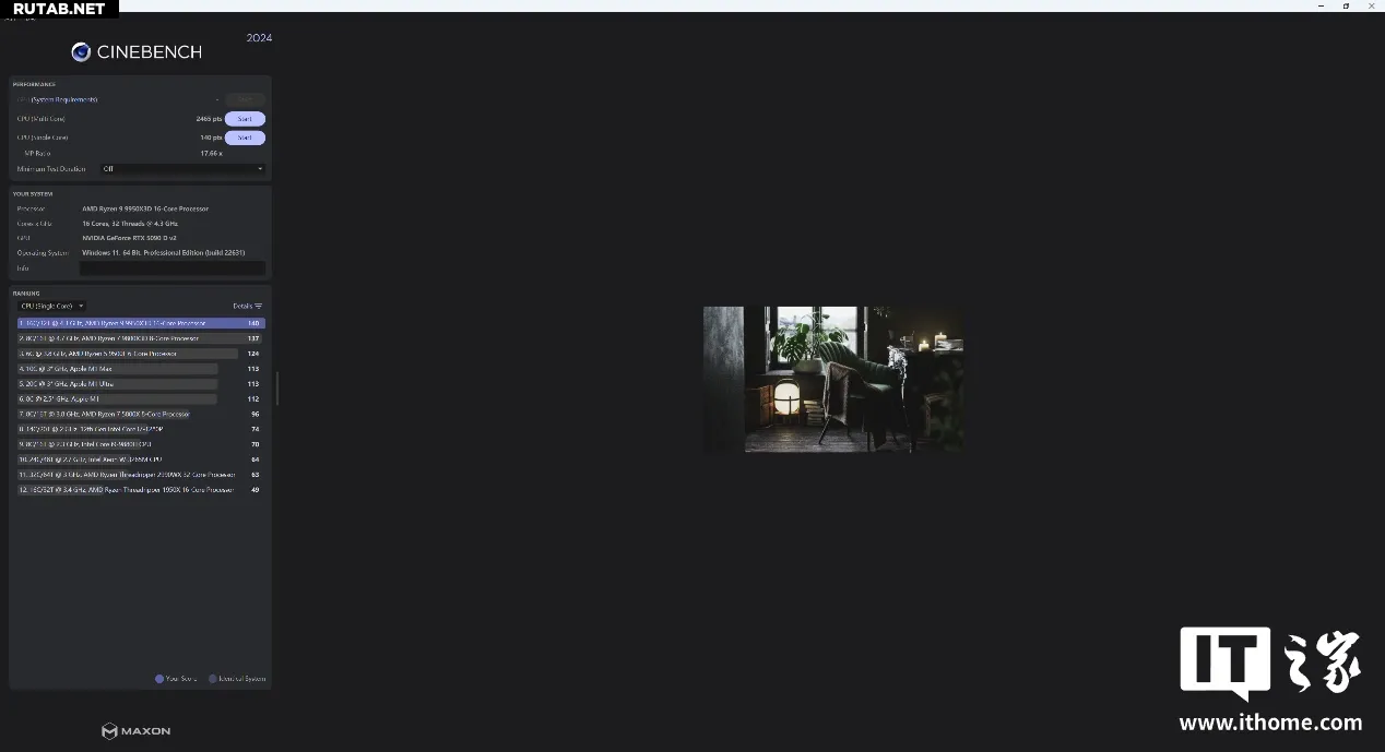 в режиме по умолчанию однопоточный результат — 140 баллов, многопоточный — 2465 баллов;