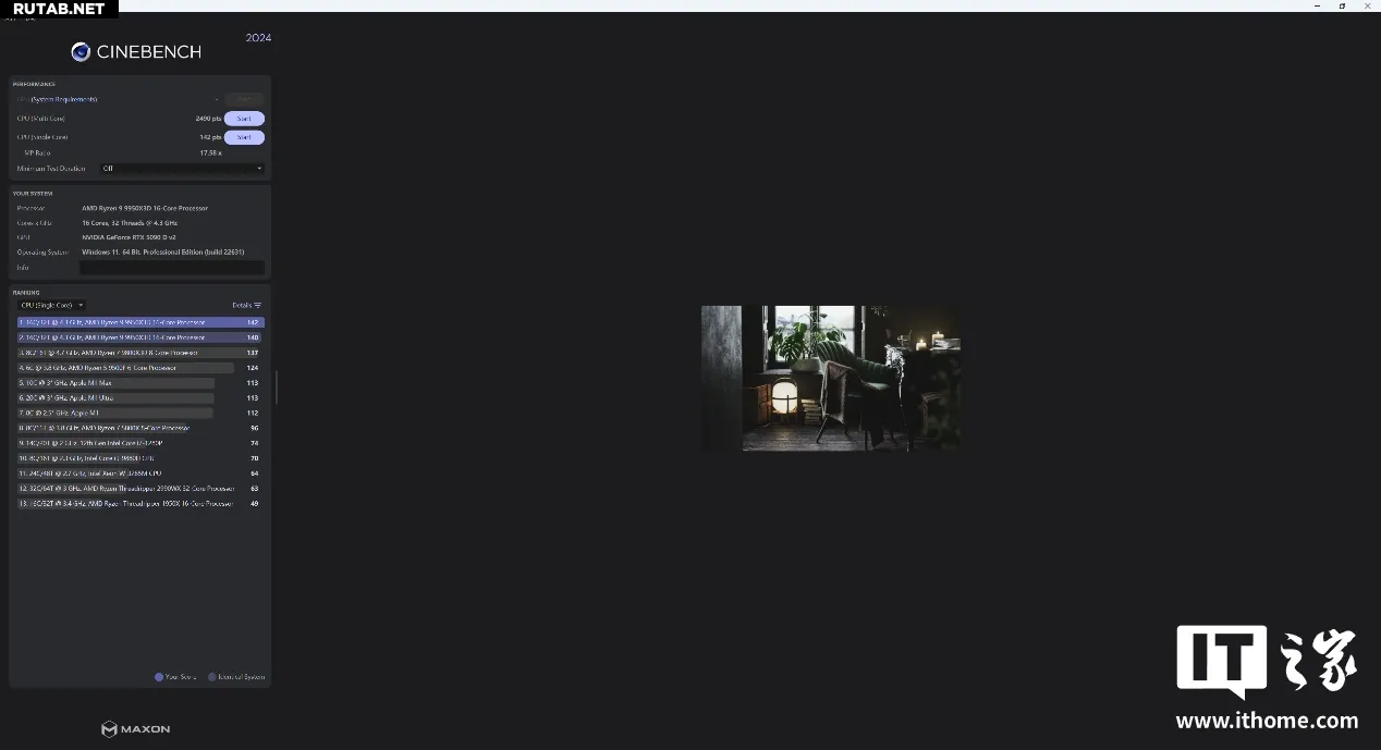 Ryzen 9 9950X3D показал 2289 баллов в однопоточном и 42 996 баллов в многопоточном режиме при стандартных настройках;