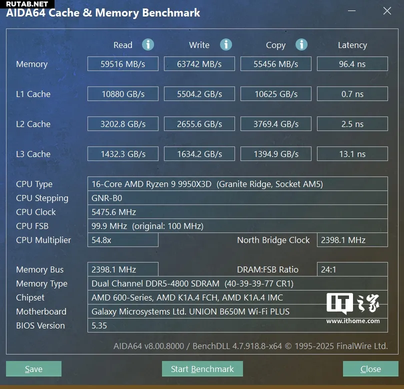 Эти результаты практически идентичны тестам процессора Ryzen 9 9950X3D на флагманской материнской плате X870, за исключением чуть более консервативных частот. При этом температурный режим остаётся стабильным, что подтверждает: плата GALAX B650M Wi-Fi Black Warrior PLUS в сочетании с СЖО на 360 мм способна эффективно охлаждать даже такой производительный процессор, как Ryzen 9 9950X3D.