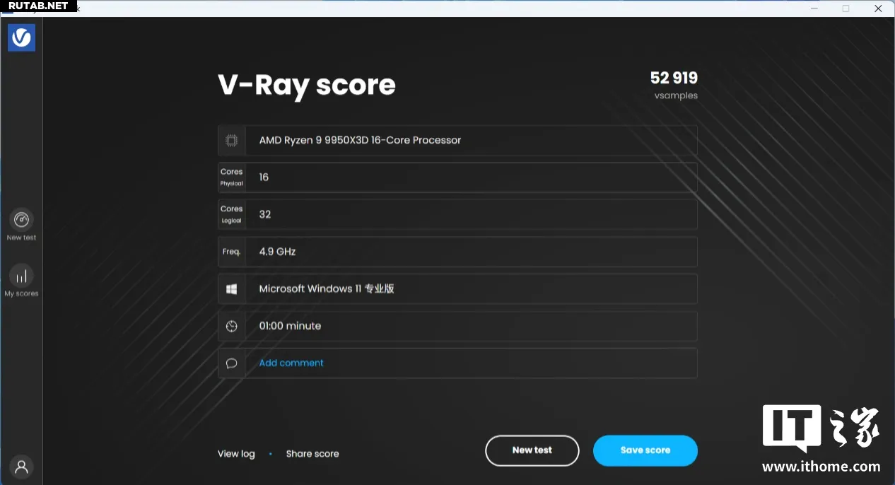 - Процессор Ryzen 9 9950X3D в режиме стандартной частоты показал результат 52836 баллов.