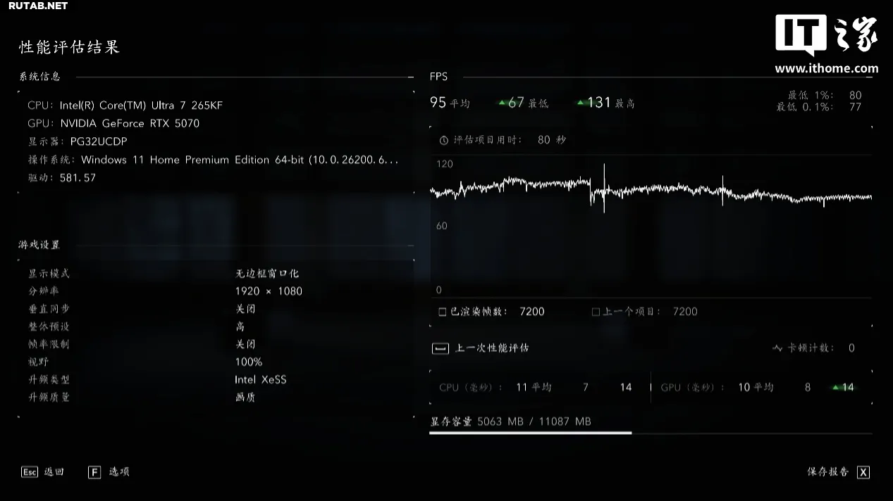 Assassin's Creed: Shadows создаёт более серьёзную нагрузку на процессор, и опции трассировки лучей в ней нельзя полностью отключить. При настройках 1080p и высоком качестве графики, с включённой технологией Intel XeSS в режиме «Качество», встроенный бенчмарк показал средний результат в 95 кадров/с, а 1% Low — 80 кадров/с.