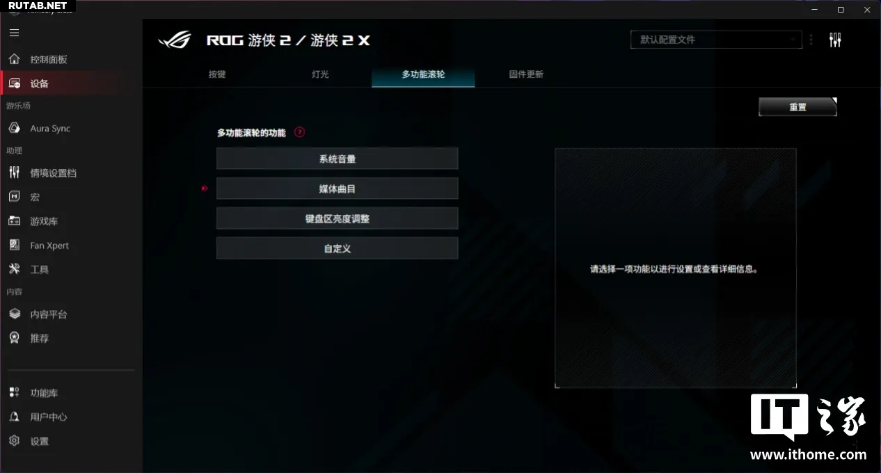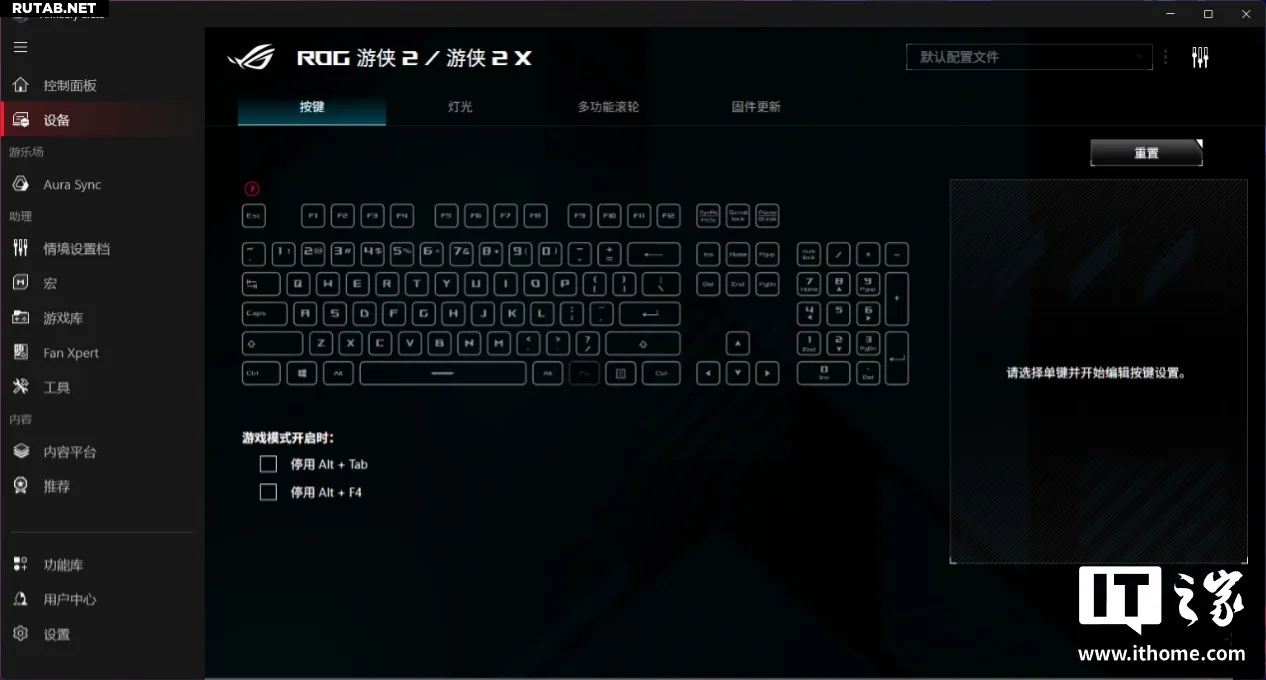 Несмотря на простоту управления, возможности кастомизации весьма обширны. Возьмём для примера клавиатуру ROG Ranger 2. Её меню настроек включает четыре раздела: