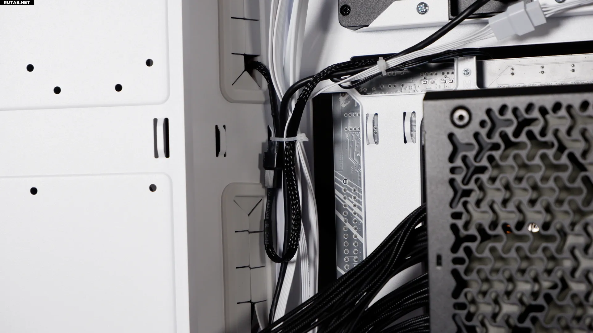 Конечно, хотелось бы видеть больше встроенных решений для управления кабелями, помимо стандартных стяжек. Особенно учитывая, что липучки приходится вырезать самостоятельно из небольшого рулона, входящего в комплект. Это требует определённых усилий, а любые изменения потребуют начинать всё заново после того, как вы всё разрежете.