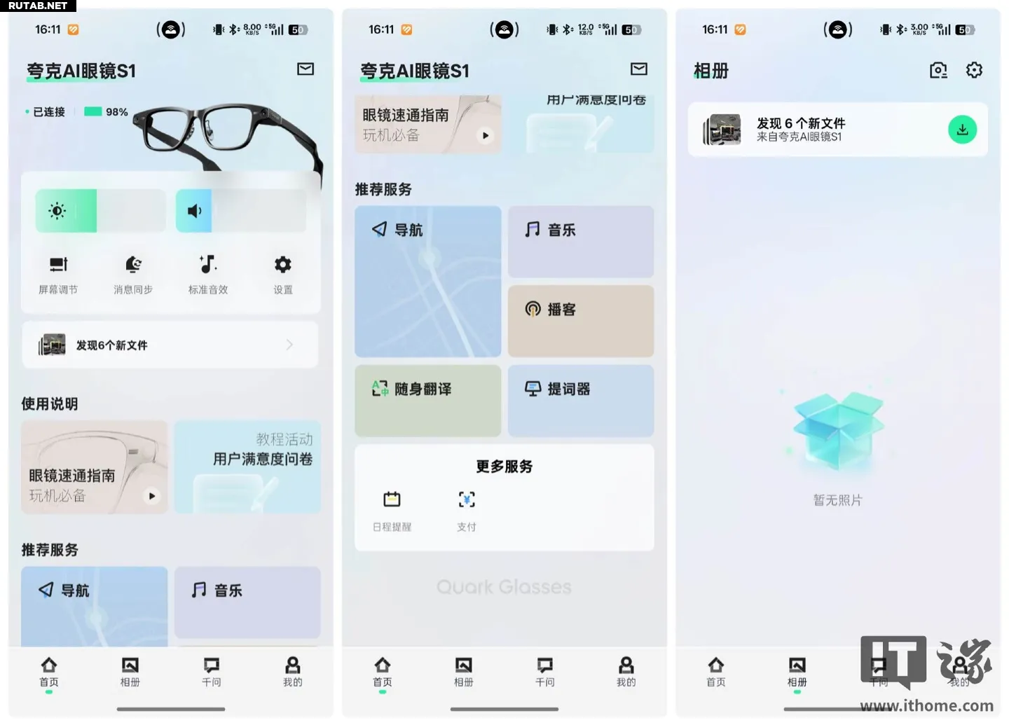 细节体验上,夸克 AI 眼镜还可以手机消息提醒(比如微信、钉钉、IT之家新闻推送等,可以理解为智能手表的手机消息推送)、也支持飞猪、QQ 音乐 / 网易云音乐歌词投屏、实时翻译(支持 9 种语言)等功能,覆盖了生活工作的方方面面。
