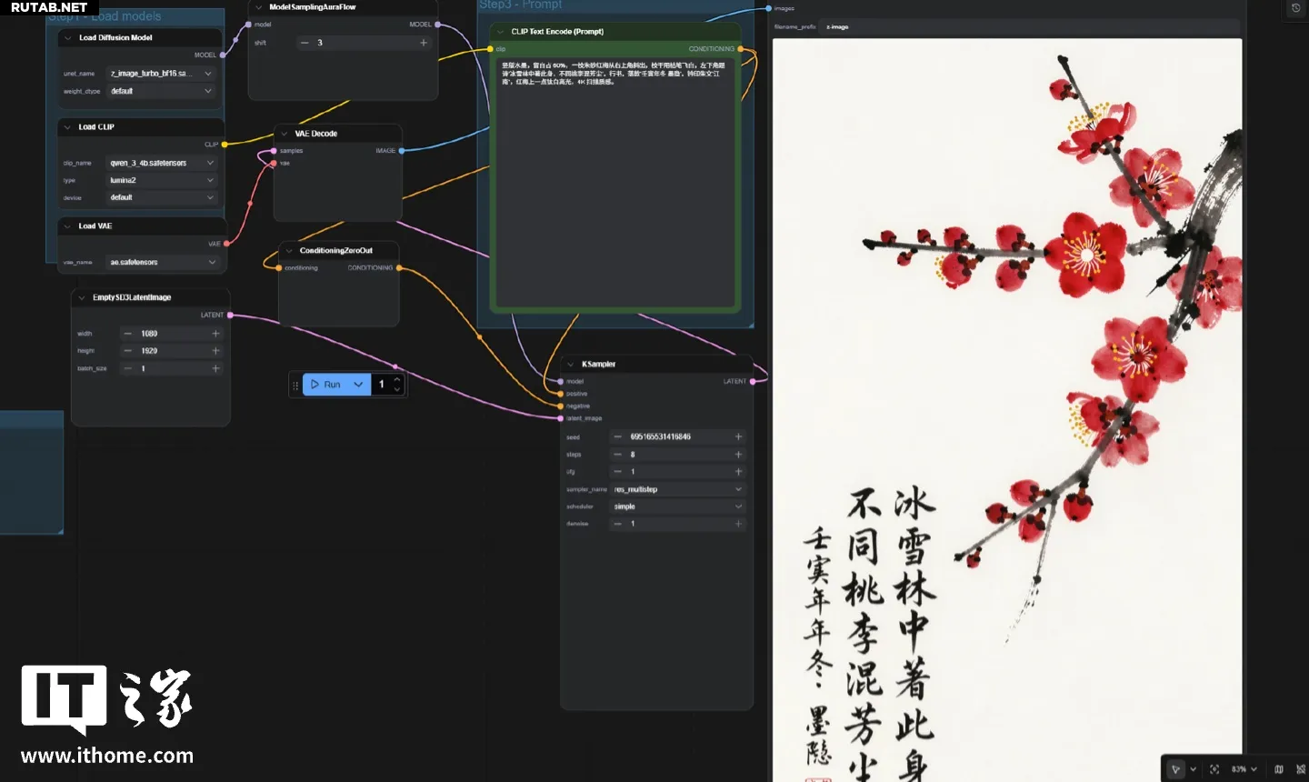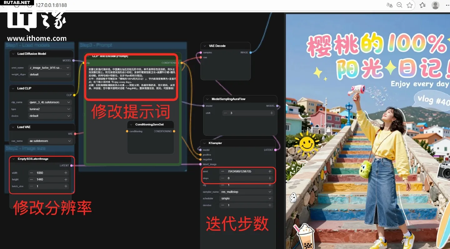 Тестирование проводилось в ComfyUI с разрешением 1080×1440 пикселей и 8 шагами вывода. Были заданы три разных промпта для проверки различных стилей: реалистичный портрет, плакат в стиле китайской живописи и 3D-аниме персонаж.