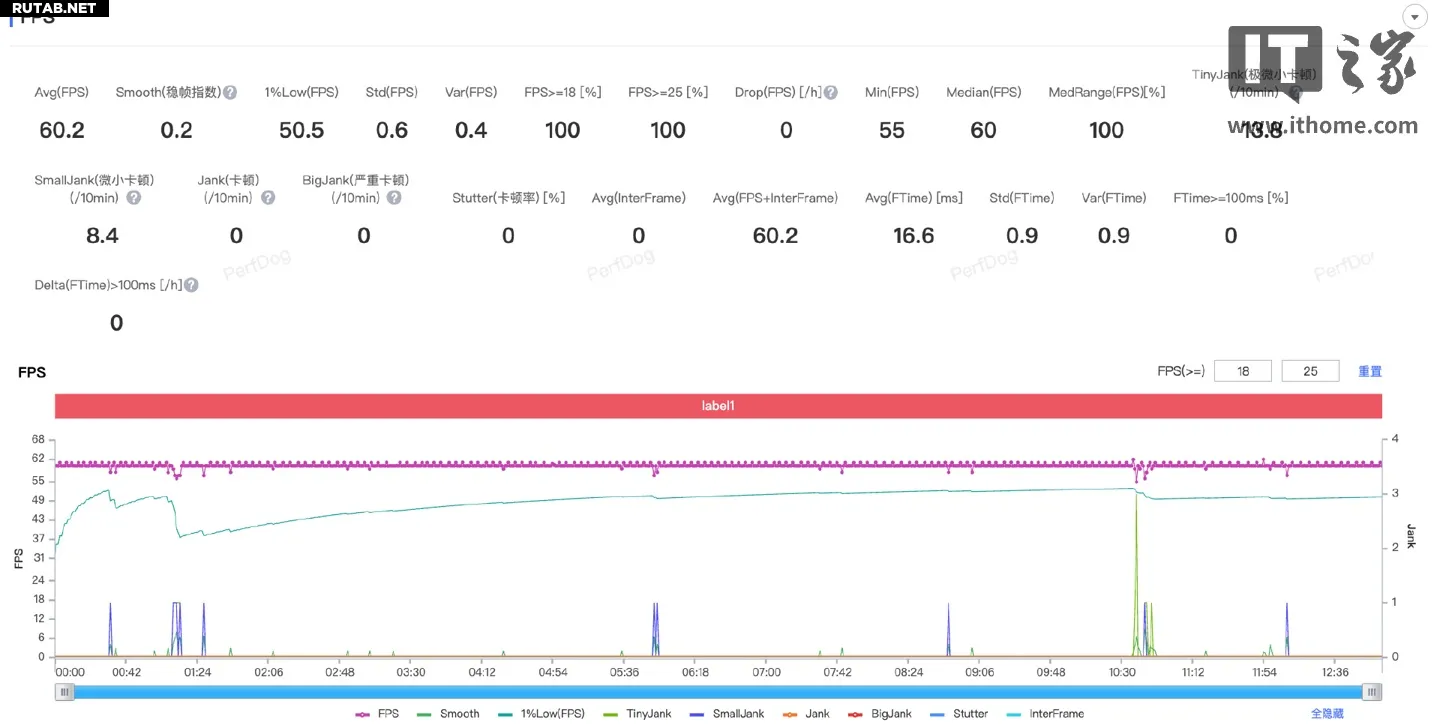 По результатам теста средняя частота кадров составила 60.2 FPS, а 1% Low — 50.5 FPS. Игра работала очень плавно, график частоты кадров был практически прямым, без ощутимых просадок или подтормаживаний.