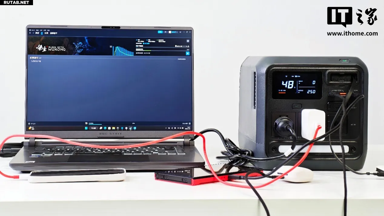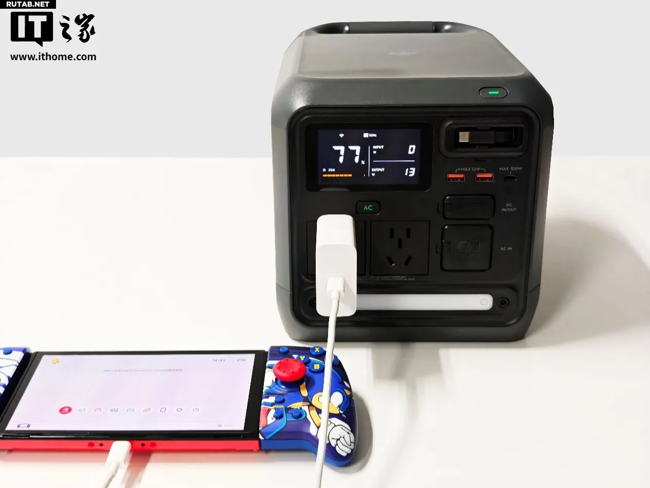 В другом типичном сценарии мы одновременно заряжали пять устройств через разъёмы AC и USB: игровой ноутбук (скачивающий игру), смартфон (с выключенным экраном), консоль Nintendo Switch, беспроводные Bluetooth-наушники и планшет iPad Pro на M1. Общая выходная мощность составила всего 250 Вт — лишь четверть от максимальной мощности DJI Power 1000 Mini. С задачами одновременной зарядки множества популярных гаджетов она справляется без малейшего напряжения.