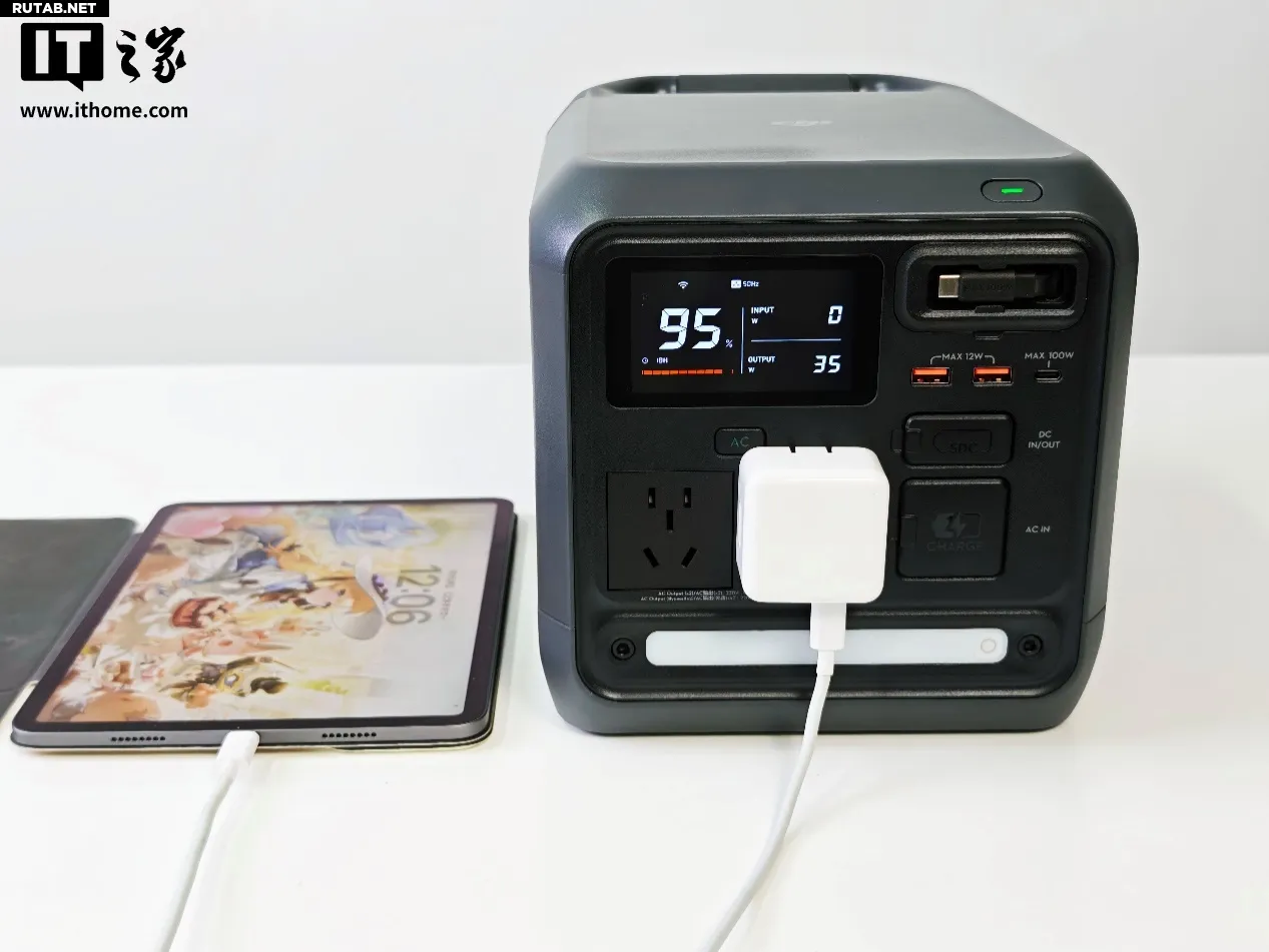 Помимо питания через AC, важнейший аспект — работа USB-портов для зарядки цифровой техники. Мощность, потребляемая каждым таким устройством, невелика, но протоколы зарядки разнообразны. Ключевой вопрос: сможет ли DJI Power 1000 Mini адаптироваться к разным требованиям по мощности при зарядке одного или нескольких устройств одновременно, став по-настоящему «универсальным большим пауэрбанком»? Станция оснащена двумя портами USB-C, каждый из которых поддерживает сверхбыструю зарядку до 100 Вт, а также двумя портами USB-A с максимальной выходной мощностью до 12 Вт каждый.