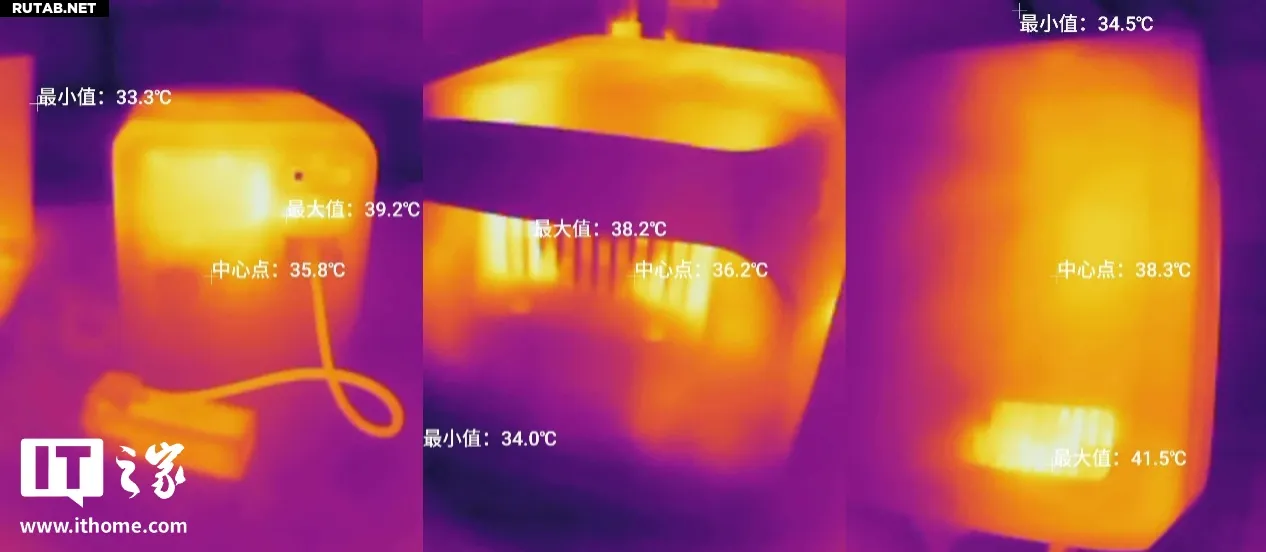 Мы также измерили нагрев корпуса DJI Power 1000 Mini во время работы. При подключении к разъёму AC игрового ноутбука и зарядке батареи дрона через порт SDC на мощности 120 Вт максимальная температура на лицевой панели составила 39.2 °C, на задней — 38.2 °C. Пиковая температура 41.5 °C была зафиксирована в зоне вентиляционной решётки на правой стороне корпуса. По сравнению с более крупной моделью DJI Power 2000 результаты практически идентичны, что говорит об отличном теплоотводе.