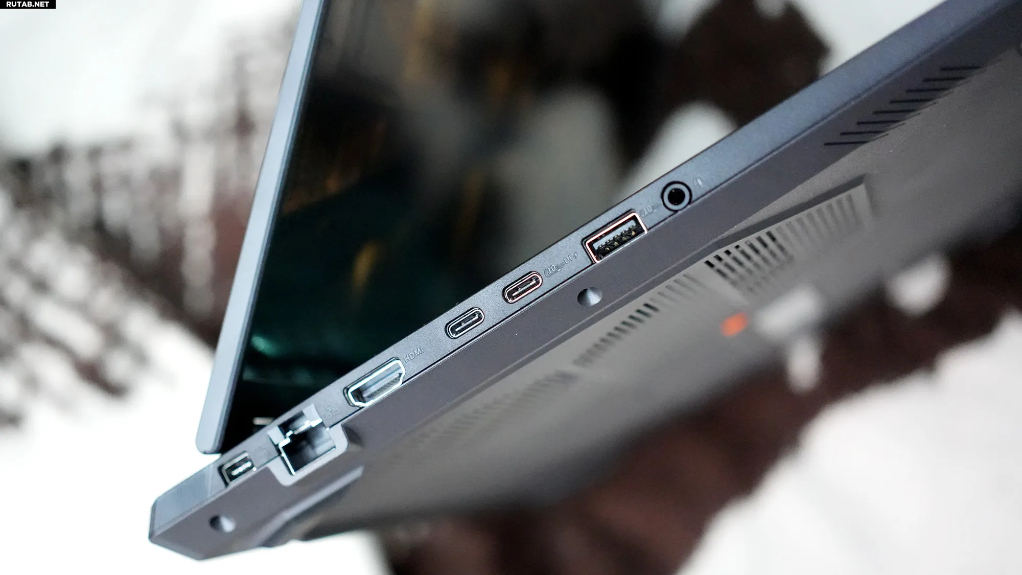 Вам всегда найдётся, куда подключить кабель. Всё это, вместе с резиновыми ножками на днище, которые приподнимают корпус для улучшения воздушного потока, а также внушительный вес конструкции из металла и пластика создают впечатление, что эта машина больше предназначена для работы на столе, чем для размещения на коленях.