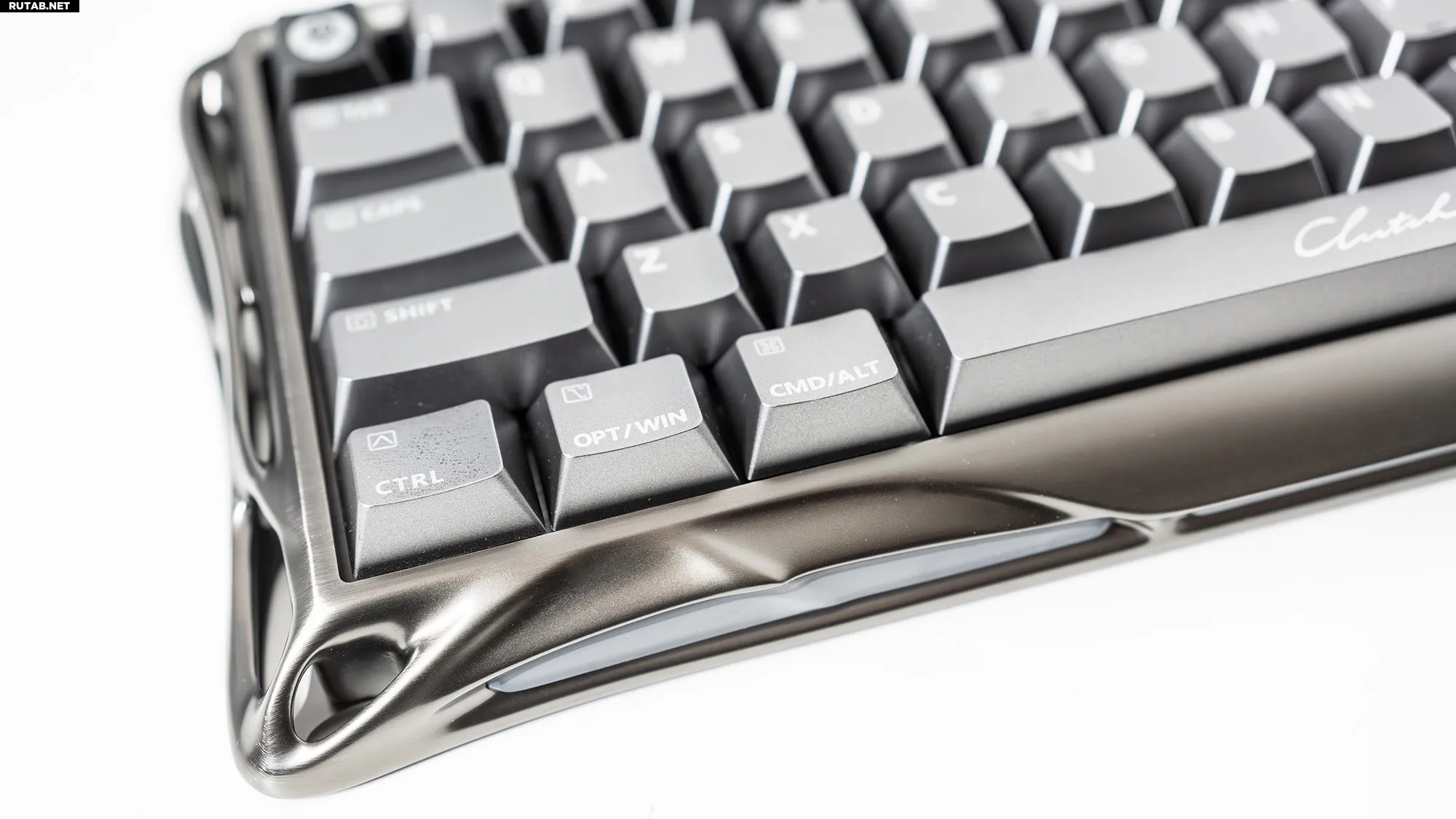 Однако единственный порт, который вы найдёте на задней панели Mercury V60 Pro, — это обычный USB-C. На противоположном конце есть кнопка для переключения между встроенными профилями, и всё. Поразительный уровень простоты для устройства, которое выглядит так по-научно-фантастически. Единственные дополнительные детали — это символы модификаторов для Mac, нанесённые на две клавиши, и загадочное слово «Clutch», написанное курсивом на пробеле.