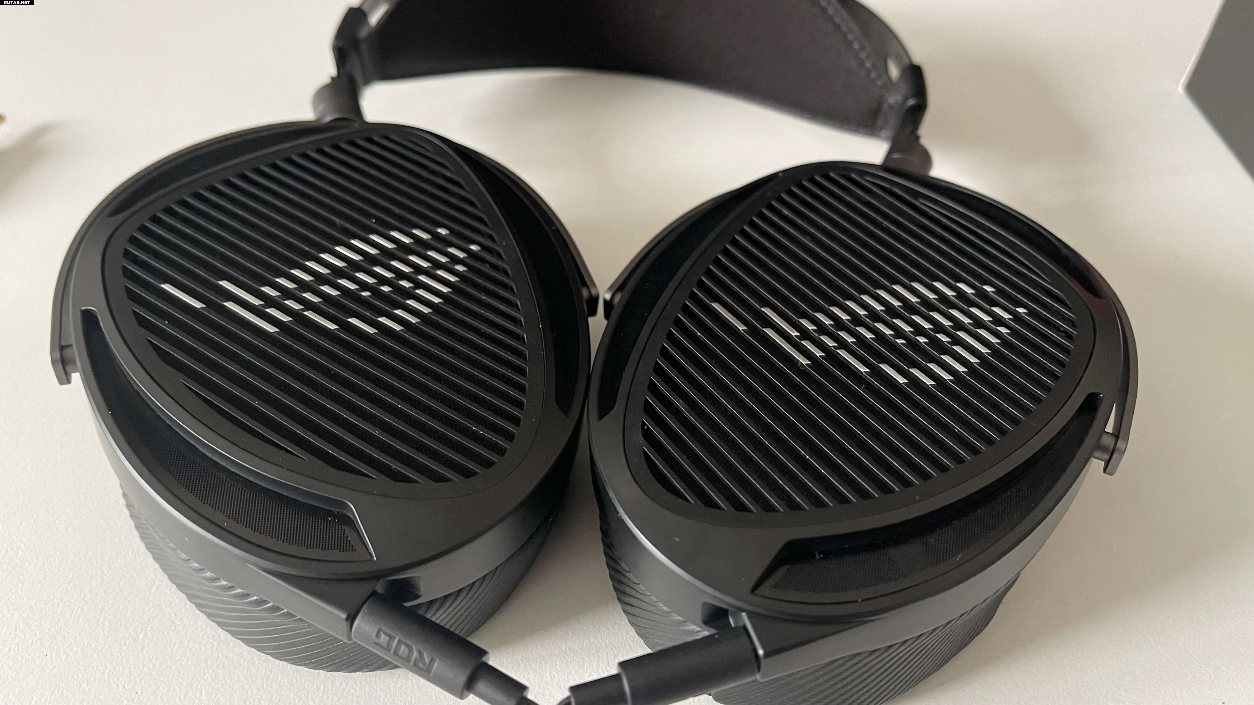 Визуально наушники явно отсылают к моделям Hifiman: от характерных вытянутых овалов амбушюров, как у Ananda, до подвесной оголовной дужки под алюминиевой рамкой, как у Arya.