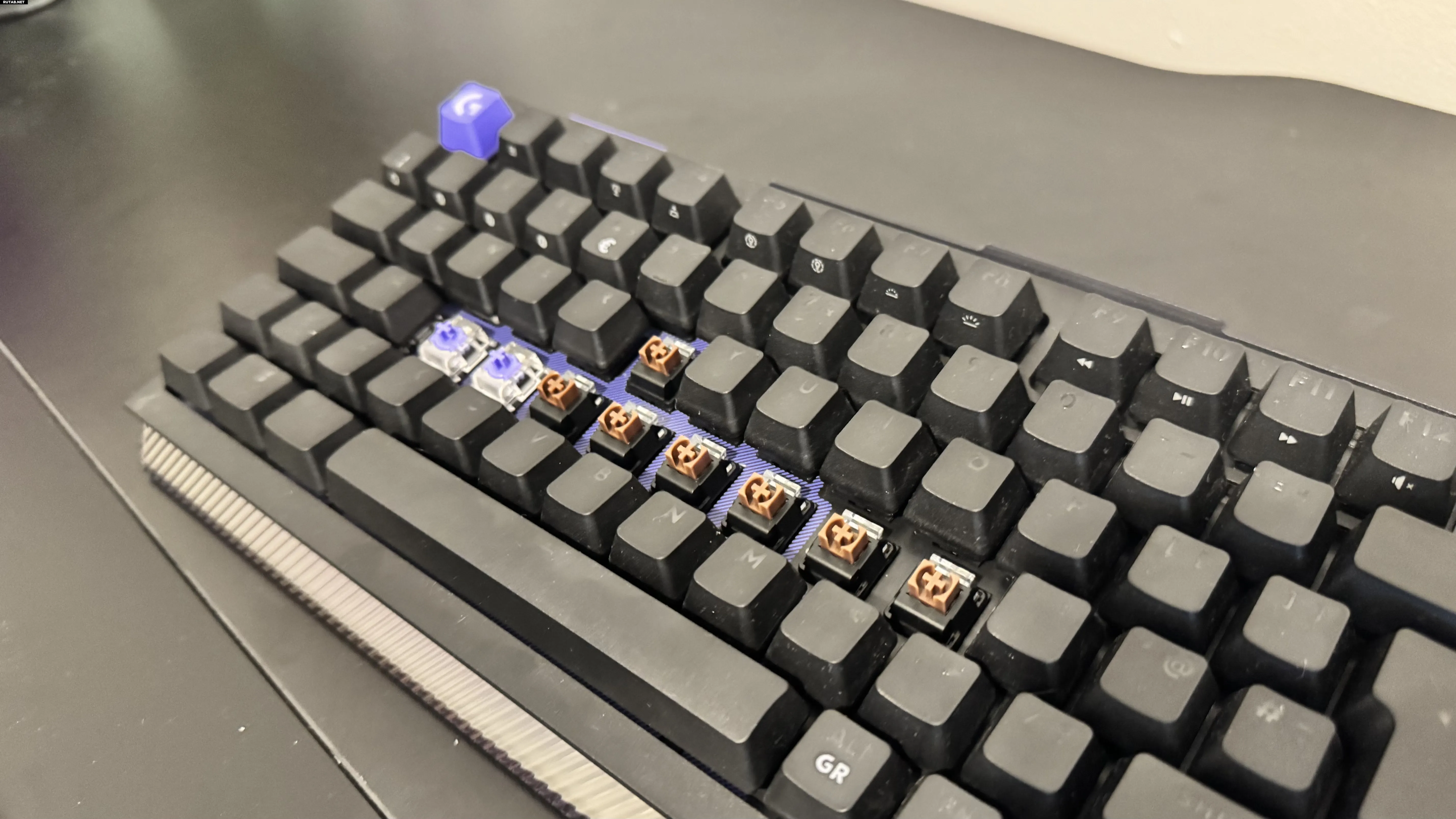 Если вы боитесь забыть, какие клавиши поддерживают Dual Swap, достаточно заглянуть под переключатели. У клавиш Dual Swap основание фиолетового цвета, а у обычных механических — черное. В любом случае, оба типа гнезд поддерживают максимальную частоту опроса 8000 Гц.