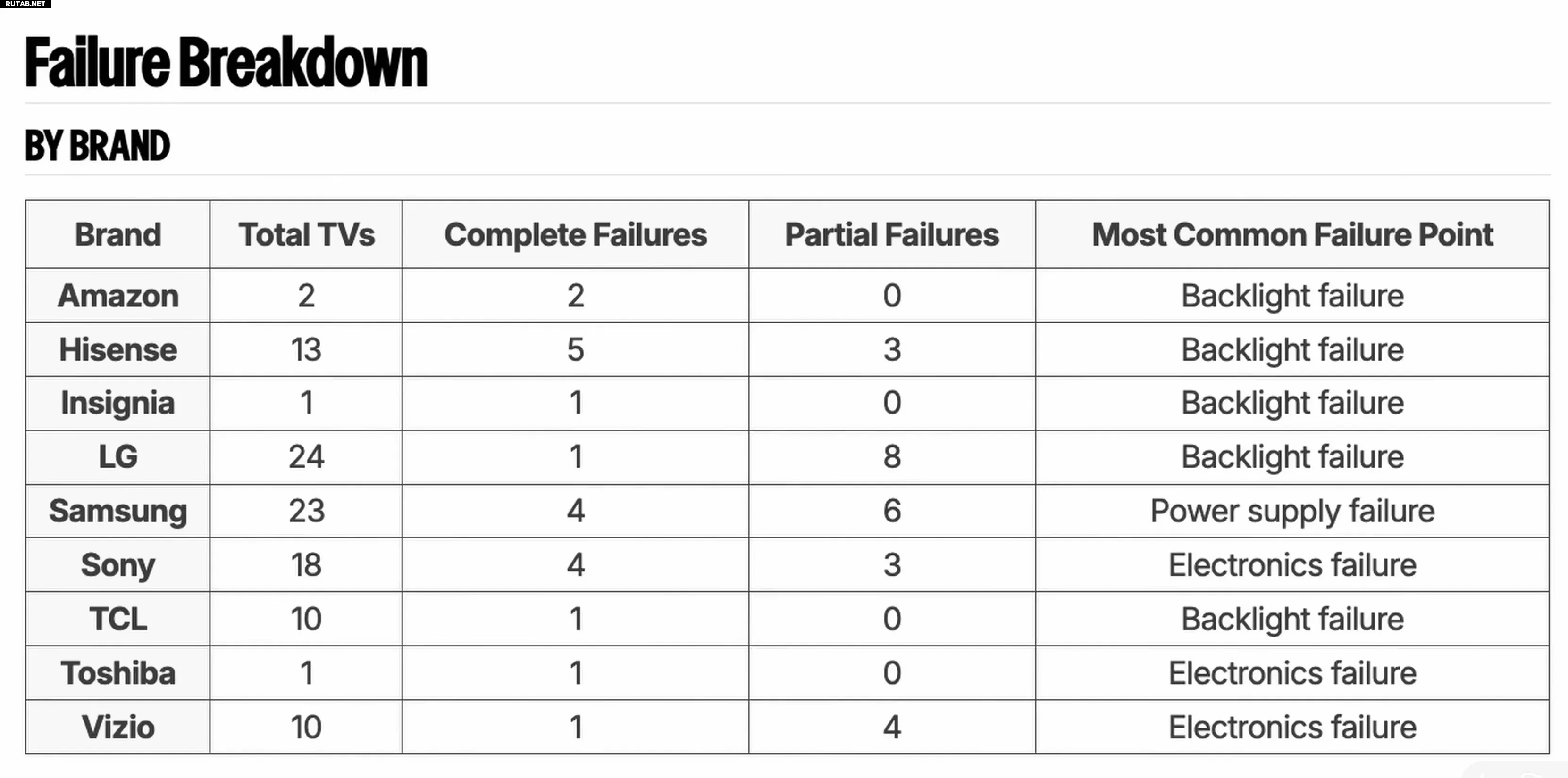 Хорошие результаты в тесте показала китайская компания TCL, производящая телевизоры дешевле, чем Sony, LG или Samsung. За три года испытаний из 10 моделей TCL полностью отказал только один телевизор. Значительно хуже справилась другая китайская марка — Hisense. Из 13 её телевизоров полностью сломались 5, а ещё 3 демонстрировали серьёзные недостатки.