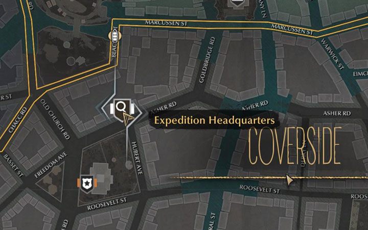 Ваша текущая цель - штаб-квартира экспедиции, но вы не знаете её точный адрес. Информация об этом содержится в описании пропавшей без вести экспедиции. Вы должны добраться до северной части района Коверсайд, до пересечения Ашер-роуд и Хьюберт-авеню. Это район недалеко от северо-восточного отделения полиции Окмонта.