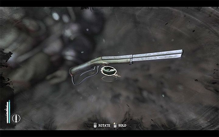 Вы найдете оружие. Поднимите и поместите так же, как на картинке выше. Активируйте Глаз Разума, чтобы увидеть прошлое.