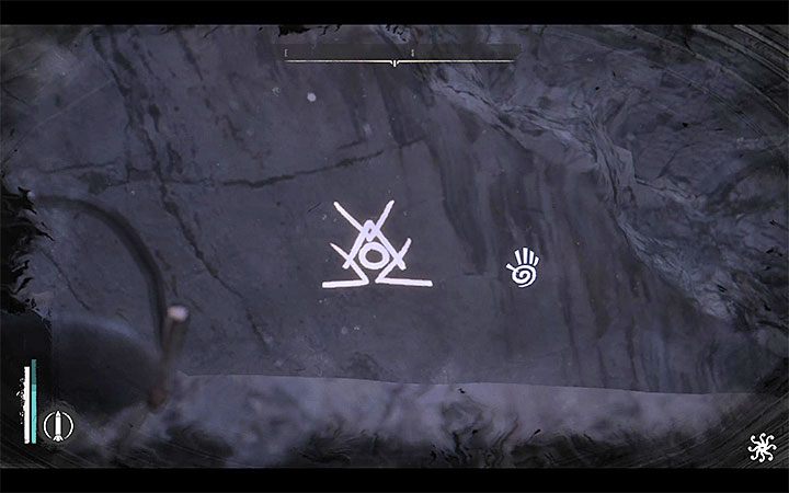 Исследование глубин начинается перед большим валуном со светящейся надписью. Этот камень - иллюзия - взаимодействуйте с ним, активируйте Глаз Разума и дайте символам совпадать. Идите прямо и поднимитесь на следующие фрагменты морского дна.