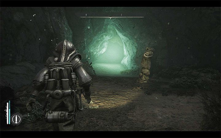 Во время пересечения следите за горячим воздухом, выходящим из отверстий. Это может повредить гидрокостюм. Когда это произойдет, удерживайте нажатой клавишу взаимодействия (E по умолчанию), чтобы восстановить костюм и восстановить потерянные очки здоровья. Воздух постоянно выходит из некоторых отверстий. В других случаях воздух выпускается с интервалами. Используйте эти перерывы, чтобы пробежать через «неактивное» отверстие и двигаться дальше. По пути вы встретите подводное существо. Можете использовать гарпун и «оглушить» этого монстра, или просто обойти его, сохраняя безопасное расстояние.