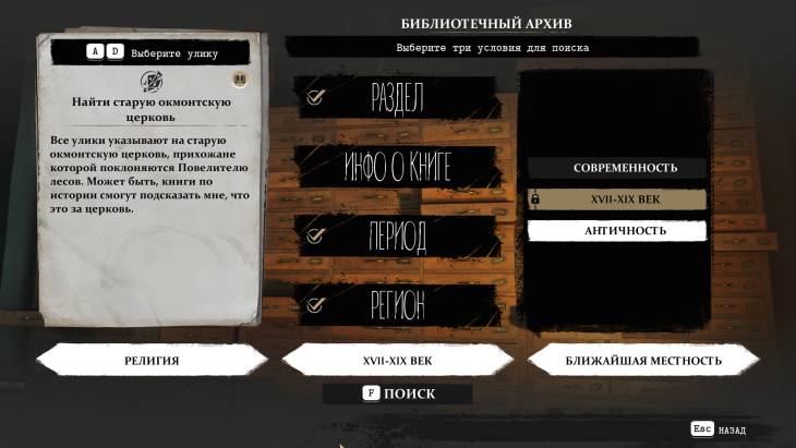 Выберите «Найти старую окмонтскую церковь» в качестве доказательства.