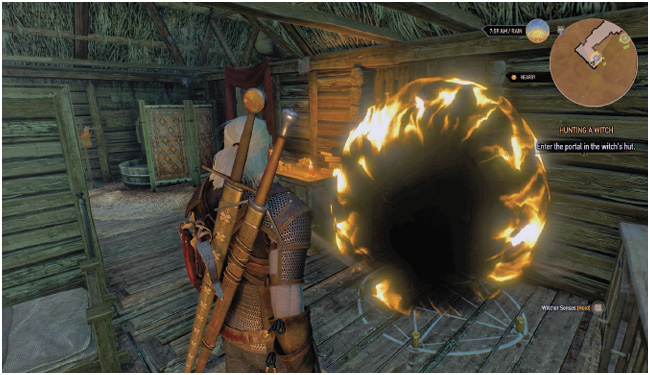 | Задачи: Поговорите с ведьмой в её хижине. Обыщите хижину, используя свое Ведьмачье чутье. Войдите в портал в хижине ведьмы. Найдите ведьму. |