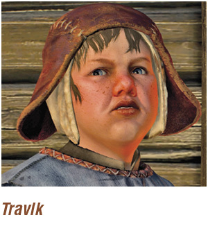 Квинтет розовощеких лиц смотрит на вас из-за груды бревен. Спросите о пепельноволосой женщине, и разговор начнётся на тему касательно сирот, войны и маленького Ивасика. Мгновение спустя появляется старушка, предостерегая свой выводок. Как бы вы ни старались, ваши просьбы узнать больше об этом «Ивасике» ничего не приносят. Бабушка затем уходит; время для дальнейшего допроса.