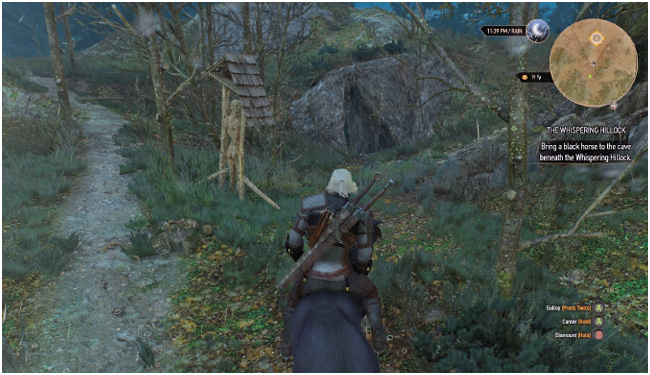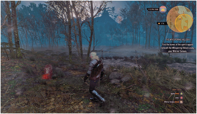 | Цель: найти кости духа, пойманные в ловушку под Шепчущий холм, используя свое Ведьмачье чутье. |