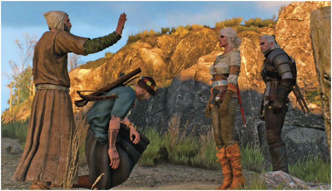 Если готовы, то скажите об этом Цири, и отправляйтесь прямо сейчас. Вы сразу же встретите двух жителей деревни на спуске.