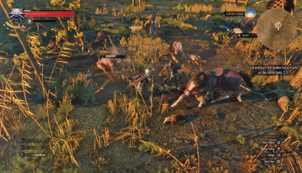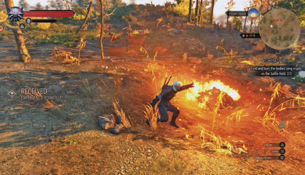 Найдите жреца Вечного Огня, окруженного двумя стражниками вдоль дороги, идущей к западу от деревни Яворник. Поговорите со священником, у которого также есть задача - избавить поле битвы от трупоедов, которые хотят полакомиться плотью. Вам дают немного святого масла, чтобы окропить три погребальные ямы, и отправляют в путь.