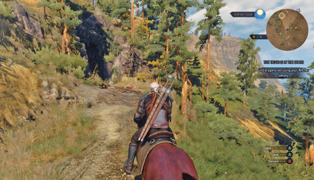 Отправляйтесь на юго-восток вниз по пологим холмам ко входу в пещеру с видом на берега реки. Вход в пещеру сам по себе зловещ — груды черепов и крови усеивают землю. Войдите в туннель, следуя в тупиковую пещеру, где около пяти гулей поджидают жертву. Убейте их. Затем осмотрите павшие трупы и используйте Ведьмачье чутье, чтобы найти драконий корень вдоль одной из каменных стен.